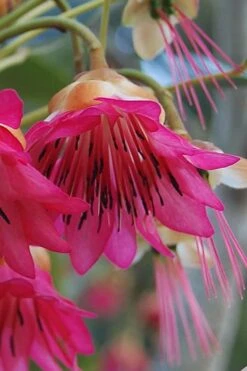 Rhodoleia henryi ‘Scarlet Bells’, commonly called Hong Kong Rose, is one of the most interesting plants we’ve come across in years. Not to be confused with Rhodoleia championii, which isn’t nearly as cold hardy, this species is cold hardy to at least zone 7 and possibly zone 6. Though the dark green evergreen foliage looks somewhat similar to Camellia, the flowers have a distinct look all of their own. From late winter to mid spring clusters of dangling, bell-shaped, vibrant rose-pink to fuchsia-pink flowers are produced in abundance. Truly a site to behold in bloom, this is one of those plants that will have you always looking forward to spring. We suggest planting this rare beauty in part shade as that’s where it looks and performs its best. Morning and/or evening sun and all day filtered sun is fine, but do provide some filtered sun to shade in the afternoon.Â